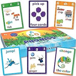 THREE GAME DECKS – Included are three carefully graded phonics card game decks each with 100+ words and 36 unique phoneme targets and an assortment of possibilities! This card game for kids promises fun, entertainment, and the opportunity to learn quickly! HOME AND CLASSROOM FRIENDLY DESIGN – For emergent readers and young students of English! Clearly readable cards and various game play combinations make this card game set a fun and practical solution for teachers and parents in the classroom or at home. It’s an ideal tool for learning through play the various phoneme patterns that make up the English language! ENGAGING GAME PLAY – There are many ways to play AGO phonics card games. Action cards (such as jump, pick up, change color etc) add to the fun. Students learn the phonics sounds and patterns in a natural, fun way with these fascinating educational game cards. Over 100 Phoneme targets, and over 300 word high frequency vocabulary count! Each card deck in this box set contains 36 phonics cards (each with unique phoneme targets and vocabulary items), plus 17 action cards, guaranteeing a fun blend of consonants, vowels, digraphs, diphthongs, r controlled vowels and more for emergent readers learning about phonics. VERSATILE HOME APP – A free supplementary learning app (IOS/Android), which matches the card's content is downloadable for free, adding a voice to the cards as players enjoy and complete daily phonics lessons.