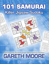 - Featuring 101 Killer Jigsaw Samurai Sudoku puzzles, sorted into order of increasing difficulty and printed on large, top-quality paper, this unique collection of puzzles is full of attractively-designed challenges from best-selling puzzle author Gareth Moore, author of many international books. Each puzzle consists of 5 overlapping Killer Jigsaw Sudoku grids, arranged so that you must solve all of them simultaneously to arrive at the unique solution to the overall puzzle. Guessing is never needed - only sensible logical deductions. Jigsaw Killer Sudoku combines Jigsaw and Killer Sudoku, replacing the 3x3 regions of regular Sudoku with irregular jigsaw shapes, and adding in the numerical cage constraints of Killer Sudoku. Visit www.PuzzleBooks.org for a full list of other titles in this series.