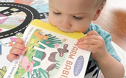 - A Rugged, Indestructible Teether Book That’s Built to Be Loved (and Chewed!) Get ready for a day on the farm with John Deere! John Deere Hello, Farm! is a chewable book that’s more than just a story—it’s a durable, chew-safe toy designed especially for little hands and teething mouths. Say hello to hardworking machines and meet friendly farm animals while learning their names and sounds in this durable book designed just for babies. Made with soft, safety-sewn, BPA-free material, this indestructible book is built to be chewed, bent, hugged, and loved—without ever ripping or tearing. Read-It, Chew-It, Wash-It, and Love-It! That’s the Tuffy way.Tough Enough for Teething: Made from soft, non-toxic, BPA-free materials, this chewable book doubles as a teether for soothing sore gums.Indestructible, Paper-Like Pages: Lightweight and rip-proof, each page feels like paper but is safety sewn and chew-safe for infants and toddlers. Early Learning Through Play: Teaches color recognition while encouraging fine motor skills and hand-eye coordination.Easy to Use Anywhere: Includes a built-in punch-out hole for attaching to a stroller, car seat, diaper bag, or playpen - no dropped books here!Washable: Built for real-life baby use - simply wash and it's ready to go again! Don't forget to complete the set with other Tuffy book adventures from Cottage Door Press!