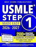 - USMLE Step 1 Made Easy changes the game. With 2,500+ exam-style questions, 2,100+ flashcards, and unlimited access to our online E-Learning Platform, it gives you a proven high-yield roadmap to master Step 1 with focus and confidence. Built with recent Step 1 test-takers, tutors, and high scorers, every chapter converts real exam experience into practical, bite-size direction. You’ll study smarter, conserve mental energy across those seven blocks, and walk in knowing your time went where the points are. What’s Inside:Complete yet simplified coverage of every subject tested across all 7 exam blocks—anatomy, physiology, pathology, pharmacology, and more, aligned with the official Step 1 content outline.Clear diagrams & visual illustrations that make complex systems easy to grasp in minutes, not hours.Proven tips and memory techniques that sharpen recall when you need it most—inside those 60-minute blocks. And the value doesn’t stop with the book itself. With your paperback purchase, you also gain lifetime access to the Next Score Publications E-Learning Platform, giving you full access to: 📝 Unlimited Exam Practice & Mock Tests – Simulate the real USMLE Step 1 with an interactive test simulator that generates unlimited full-length exams, covering all question types to sharpen your reasoning and track progress. ✔️ 2,500+ exam-style questions with detailed answers—so you don’t just practice, you truly understand the reasoning. ✔️ 2,100+ Digital Flashcards – Quick-hit cards covering every high-yield Step 1 concept, bundled with the guide for on-the-go review. 🧠 Systema-14 Memorization Course – A proven video program that helps you breeze through hundreds of cards and lock facts in for good—no cramming, just smart repetition. 🧘 Mindset Video Course – Learn how to stay calm under pressure, manage exam stress, and keep recall sharp—perfect for that critical mid-exam break. Success on Step 1 doesn’t come from studying more—it comes from studying right. USMLE Step 1 Made Easy distills the exam down to what the blueprint actually tests. Reinforced with 2,500+ detailed practice questions, 2,100+ flashcards, and unlimited online tools to ensure nothing is left to chance. This is the structured approach serious students choose when they want to move beyond anxiety and toward results. Make the decision today to prepare with focus, precision, and confidence.