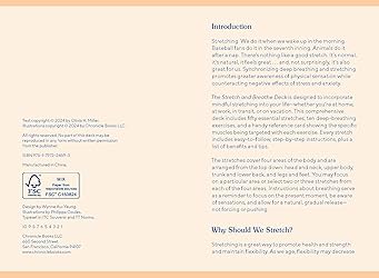 Discover the advantages of mindful stretching with this insightful deck by the bestselling author of The Yoga Deck Pairing stretching with breathwork offers a simple and effective way to ease tight muscles, enhance flexibility, reduce mental and physical tension, and improve overall well-being This illustrated deck provides step-by-step guidance for 10 deep-breathing exercises and 50 essential stretches, targeting key muscle regions The accompanying booklet offers safe stretching tips and recommended sequences for enhanced posture, relaxation, strength, balance, and more A convenient home tool for whenever you need a good stretch, also perfect as a gift