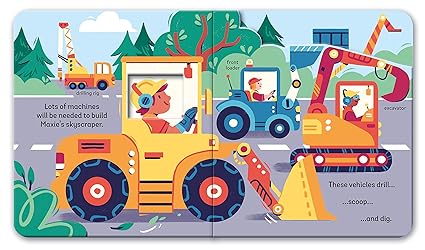 - Join Maxie on a building site in this board book with peek-a-boo holes throughout and a pop-up!Join Maxie as they build their dream skyscraper from the ground up. Die-cut board pages and a pop-up make every page an interactive experience, keeping readers guessing about what surprise awaits on the next page, while fun and informative writing encourages kids to guess at the next stop on their journey and explains fascinating facts about construction machines and buildings.Zoom: Construction Site Adventure is part of What on Earth Books' Zoom series of 36-page board books written by Susan Hayes, with peek-a-boo holes through the pages and popups that keep readers guessing about what awaits on the next page – each delightfully illustrated spread offers another surprise.Also in the Zoom series:Zoom: Space Adventure - Join Ava and her cat on their journey into spaceZoom: Construction Site Adventure - Join Maxie as they build their dream skyscraperZoom: Dinosaur Adventure -Join Jasmine and Jamie on an epic journey back to the prehistoric eraZoom: Rainforest Adventure - Join Lin on her trek into the Amazon rainforestZoom: Farm Adventure - Join Bo on as he gets to work on his very own farm