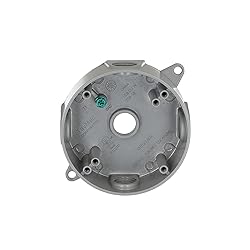 - Hubbell Bell 5361-0 4-Inch Round Weatherproof Splice Box 5-1/2-Inch Outlets for use in branch circuit wiring in wet, damp, or dry locations. Rugged die cast construction. Reinforced connector outlets. State-of-the-art powder coat finish. Cast-in mounting lugs provide fast, secure installation. Includes four closure plugs, installed ground screw, and multi-lingual instructions. Six 10-24 Tapped Holes.