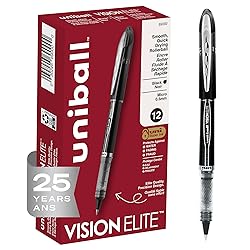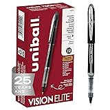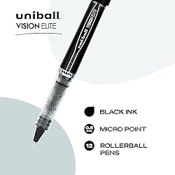 uni-ball Vision Elite Rollerball Pens Fine Point Micro Tip, 0.5mm, Black, 12 Pack