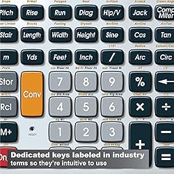 SOLVE ALL YOUR DIMENSIONAL MATH quickly and accurately with the award-winning CM Pro-Desktop construction calculator’s powerful built-in solutions for building; and full trig functions with sine, cosine, tangent, arcsine, arccosine and arctangent LETS YOU EFFORTLESSLY WORK IN AND CONVERT between all common building dimension formats: feet-inch-fractions, decimal feet-inches, yards and metric -- including area and volume. Plus weight-per-volume and D: M: S to decimal degree conversions too TIME-SAVING BUILT-IN FUNCTIONS for right angles give you instant solutions for square-ups, rafters (hip, valley, jacks), rake-walls, slopes, angles and more. Plus complete stair layout, advanced solutions for arcs, arches, circles, columns and more HELPS YOU PREVENT COSTLY MATERIAL WASTE with built-in solutions for roofing, drywall, studs, blocks, concrete footings and board-feet lumber estimating. Plus compound miter functions help avoid errors when working with crown molding and other millwork INVALUABLE' TOOL PAYS FOR ITSELF by reducing headaches, saving time and preventing expensive material errors on your projects, from the office to the field. Comes with a large digits on easy-to-see multi-position tilt display LCD, easy-to-follow user’s guide, plus a pocket reference guide in Spanish, full-size keys, long-life battery and full one-year limited REESE’S LAW COMPLIANT BATTERY DESIGN – Button-cell battery compartment is secured with a tool-required fastener to help prevent unintended access and align with current U.S. federal safety requirements (16 CFR Part 1263). Battery compartment remains secured during normal use, transport, and handling.