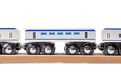 maxim enterprise, inc. Express Train Set, Bullet Train for Wooden Train Track, Train Set of 2 Engines & 1 Passenger Car, Compatible with Thomas and Friends, Brio & Other Major Brand Wooden Railways