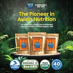 - Harrison’s High Potency Fine is a premium, certified organic bird food designed for small to medium-sized birds like canaries, budgies, and more. Packed with essential Omega 3 & 6 fatty acids, it promotes vibrant plumage, healthy digestion, and overall vitality. This nutrient-rich formula supports all life stages, including molting, breeding, and recovery, providing your feathered friends with complete, balanced nutrition. Made with organic, non-GMO grains and legumes, it’s free from harmful additives, pesticides, and chemicals, ensuring your birds receive the highest quality food. This carefully crafted food meets the unique dietary needs of birds, delivering the necessary nutrients for healthy growth and vitality. The human-grade, certified organic ingredients provide your pets with an excellent food option. For freshness, seal the bag tightly and use within 8 weeks of opening, with refrigeration or freezing recommended to extend shelf life. Harrison’s Bird Foods to give your bird the essential nutrition they need for a long, healthy, and happy life.