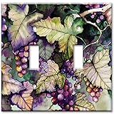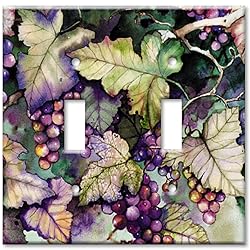 Art Plates Brand Decorative Printed Double Gang Toggle Switch Plate - Grapes and Leaves Double Gang Toggle Wall Plate - Size: 4.5 x 4.57 SOLID METAL: Design is directly printed on USA metal switch plate. High resolution original graphics. MADE IN THE USA: 100% Made in the USA by American workers. Printing is finished off with UV cured high gloss finish that protects from abrasions and scratches Color matched screws are included. Get rid of those boring wall plates and spice up you home with Art Plates decorative printed switch plates.