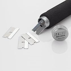 - This is an excellent scraper, it sleek design allows for easy storage. It's a super duty model that can hold up to 15 extra in the handle. Made of durable construction for a longer tool life.