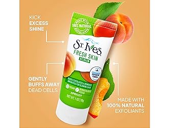 - St. Ives Fresh Skin Apricot Scrub delivers a deep exfoliating cleanse that leaves your skin smooth, refreshed, and glowing. Made with natural exfoliants, this travel-size scrub helps remove dirt, oil, and dead skin cells for a radiant complexion. Perfect for on-the-go use, it provides gentle yet effective exfoliation, revealing soft and healthy-looking skin after every wash.