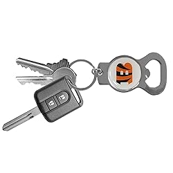 - Our NFL bottle opener key chain has a polished chrome finish and features the school logo.