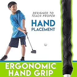 LEARN TO PLAY: The Franklin Future Champs Kid's Golf Set is the perfect set to teach young golfers how to play the game for the first time! EASY TWIST & LOCK LENGTH ADJUSTMENTS: Each club features our ADJUST-A-SPORT technology, which allows each club to adjust in length for a custom fit, promoting proper swing technique for each player! KIDS GOLF SET INCLUDES: (1) adjustable putter (20"-30"), (1) adjustable driver (25"-35"), (1) adjustable iron (25"-30"), (1) travel bag, (2) kids foam golf balls and (3) tees! STORAGE AND PORTABILITY: Each set comes with a travel bag that features storage pockets for golf balls and tees, AND a shoulder strap for kids that are taking their set on the road! EASY TO HANDLE: The ergonomic hand grip design on each club is made to teach proper hand positioning for a perfect swing
