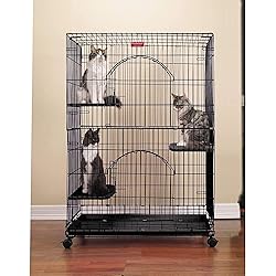 Foldable cat cage is a roomy and secure place for cats and small animals to rest and play Spring-loaded latches offering extra security; large arched front doors that allow access to the entire cage Removable plastic perches can be positioned at different heights Assembles quickly without the use of tools Also available in Ivory and Purple