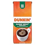 Contains one (1) 12-ounce resealable bag of Dunkin’ Decaf coffee Decaffeinated medium roast coffee blend made with 100% premium Arabica coffee beans Convenient ground coffee for use in a wide variety of home coffee makers The rich, smooth, and unmatched Dunkin’ coffee taste that made the brand famous, decaffeinated A simple, no-frills way to enjoy the great taste of Dunkin’ at home