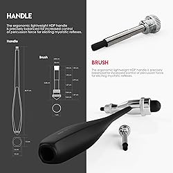 TRUSTED by Medical Providers since 1971 | Backed by our Full Lifetime Warranty & Free-Parts-For-Life Program | Latex-Free WEIGHTED BALANCED > extra-long handle is balance-weighted with the head for precise control of percussion force. ACCURATELY and effectively elicits muscle stretch reflexes, superficial or cutaneous reflexes, as well as plantar and abdominal reflexes, with less effort and greater patient comfort LIGHTWEIGHT > ergonomic HDP handle is lighter weight, with a chrome-plated zinc-alloy head and silicone mallets, for precise tendon percussion that won’t weigh you down. HIDDEN BRUSH in the base of the handle that can easily be removed to elicit cutaneous reflexes.