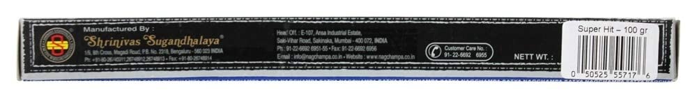 - Super hit incense by sai baba 100 gram incense super hit incense 100 gram incense. The sai baba nag champa incense is a masala based fragrance which creates a deep meditative atmosphere and has a musky sweetness with a flowery top note. Super hit - you want some powerful incense try a super hit this is some potent stuff. It retains the distinct sweet and earthy aromas that you would expect from a traditional Indian incense stick but it kicks it up a notch without getting too perfume. What could make this incense more super directions light end and blow out until tip burns red. Set it in incense holder and let burn. Other ingredients unique blend of rare herbs flowers resins and oils. Warnings keep out of reach of children. As with all dietary supplements consult your healthcare professional before use. See product label for more information. Do not leave unattended. Keep away from animals and children. Use with caution.