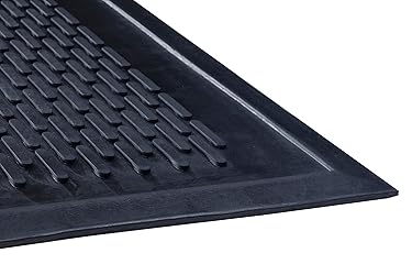 Superior molded tread aggressively scrapes shoes clean and traps debris in the base of the mat. 5/16" natural rubber construction for maximum durability. Beveled edges for additional safety and prevention of slips and falls. Country of origin: India