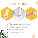 Professional Wax Residue Remover: Quickly dissolves and removes excess wax from all salon surfaces, tools, and wax warmers for a spotless workstation. Not for use on skin: Formulated specifically for cleaning professional waxing environments safely and effectively. Keeps Wax Warmers Looking New: Easily wipes away buildup and sticky residue to extend the life and performance of your wax warmer. Fast-Acting, No Rinse Required: Designed for efficient salon cleanup with a powerful formula that lifts messes without harsh scrubbing. Multi-Surface All-Purpose Cleaner: Effectively cleans counters, chairs, floors, and equipment—ideal for busy waxing studios and salons.