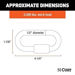 - CURT quick links are an extremely versatile and reliable tool to help you get to your destination and go a little further once you get there. A quick link is essentially a hook that is able to be fastened into a closed loop. This means it can be linked onto any D-ring or tie-down like a hook and just as easily secured like a seamless link in a chain. CURT quick links feature a special threaded end and barrel screw that allow them to be dependable and convenient. The threaded link requires no tools for tightening or loosening, though it does feature a hex shape that can accept a wrench for an extra tight hold. Quick link hooks can be used to connect rope, cable and chain, and they are the perfect safety accessory to maximize the security of your safety chains and trailer. Their list of possible applications also goes well beyond towing, giving you a reliable connection for rock climbing, boating, camping, setting up a swing or hammock, leashing the dog, repairing chain, fastening down cargo and more. To make sure our quick links are fit to face the outdoors and all of your undertakings, we construct them from heat-treated steel and give them a zinc-plated finish for durability and rust resistance. This CURT quick link features a breaking strength of 16,500 lbs., a working load limit of 3,300 lbs. and features a 1/2" diameter link.