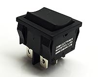 - Compact sized Rocker Switch. Double Pole, Double Throw, On-Off-On Maintained. Contacts are rated at 10 amp 125 VAC, 6 amp 250 VAC & 12 VDC. Black body and button. 3/16 inch quick connect terminals. Panel cutout is .78 x .87 inches.