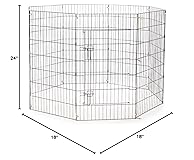Durable Dog Pen – Each panel of the ProSelect Everlasting dog pen includes 7- and 10-gauge wire Long-Lasting Pen – The wiring used in each of the pen’s panels includes a black epoxy finish that resists rust Dual Locking Latches – The easy access door in the ProSelect portable dog pen features dual locking latches for added security Mesh Dimensions – The wire mesh in each panel leaves openings of 1.5 by 6 inches 18-Inch Panel Height – These wire panels feature an 18-inch panel height with a 24-inch panel width; additional panel heights up to 48 inches are available
