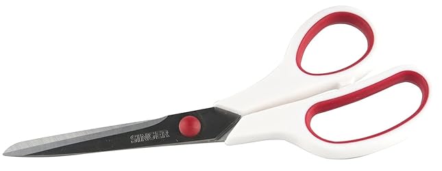 - The SINGER Fabric & Craft Scissors Combo Pack is the perfect sewing kit addition, allowing you to tackle the large and small details. Use the 8.5-inch shears to glide through any fabric easily and the smaller ones for precision in detail work. The fabric and craft scissors feature soft, rubberized pink and white handles. The rubber allows you to hold the scissors in comfort for extended periods of time. Stainless steel blades are strong and resistant to rust, dings and scratches. Both shears are designed to be used by left- or right-handed individuals, making this set perfect for the whole family.