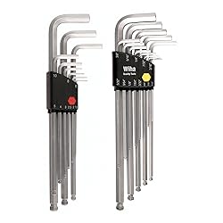 Set Includes: 1.5, 2.0, 3.0, 4.0, 5.0, 6.0, 8.0, 10.0mm | .050, 1/8, 9/64, 5/32, 3/16, 7/32, 1/4, 5/16, 3/8, 1/16, 5/64, 3/32, 7/64" | Holder 13 Piece Inch Hex Key Black | Holder 9 Piece Metric Hex Black Extra-Long Metric Ball-End L-Key Sets – Provide extended reach for accessing fasteners in deep or hard-to-reach locations. Wiha Exclusive Chrome-V-Moly Super Tool Steel – Ensures superior strength, toughness, and long-term durability. Ball Ends – Allow up to 25° off-center access for fastening at angles, increasing versatility. Through-Hardened Construction – Offers maximum durability and maintains performance over extended use.