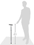 New gel grip reduces hand stress and fatigue Cane folds into four convenient parts for easy storage; Comes with plastic clip to hang cane when folded Manufactured with sturdy, extruded aluminum tubing Handle height adjusts from 32" to 36" 300 pounds weight capacity