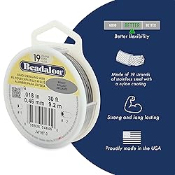 USE: Beading wire for jewelry making and stringing of all types of beads and gemstones for beading necklaces, bracelets, and beading crafts. Better quality option for jewelry designers and DIY makers. BETTER FLEXIBILITY: Made of 19 micro-wires of stainless steel stranded together with a protective nylon coating. Strong and softer jewelry wire with the better flexibility than tiger tail COLOR: Bright clear nylon coating over stainless steel wire. TIPS: For beading and jewelry making, use the largest diameter wire possible that will pass through the smallest bead hole. Refer to the spool label for choosing the correct size crimp beads/tubes. MADE IN USA. All wire is not created equal. Beadalon has manufactured wire in the USA since 1976. Beadalon is a leading brand of innovative products for DIY jewelry making and crafts.