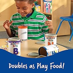 Apoye el conocimiento del alfabeto mediante el reconocimiento de los sonidos y formas También desarrolla el vocabulario temprano, el lenguaje oral, la clasificación y las habilidades motoras finas. El juego incluye 26 latas de cartón duraderas con tapas de plástico, 130 tarjetas fotográficas troqueladas, 52 tarjetas de cartas y guía de actividades.