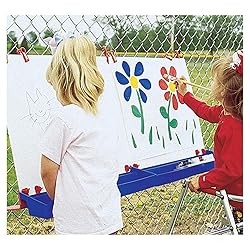 - Bring art time outside with Constructive Playthings' Outdoor Fence Easel for Two! Use the S-hooks to hang the weather-resistant easel on any chain link fence. Featuring easy-to-clean, lightweight, write on/wipe-off, laminate boards, 4 easel clips, and plastic grooved trays to hold paint containers, there are endless possibilities to the kind of art you and your child can create! Extenders have skid-resistant rubber bumpers that also allows the easel to be used as a table-top painting surface. Measuring 47.5"W x 26.5"H, you can choose where along the fence to hang this easel so it's the perfect height for your child! Constructive Playthings is committed to providing safe, compliant products and a healthy, safe working environment worldwide. We require that all products meet all applicable federal regulations, which we review on a continuous basis
