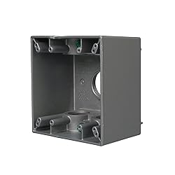 WEATHERPROOF BOX: Secure your outdoor electrical conduits with our Hubbell TayMac 2-Gang Weatherproof Deep Box with Five 1-in. Threaded Outlets. It's an ideal weatherproof box for outdoor branch circuit wiring. VERSATILE ENCLOSURE: You can also use our outdoor junction box for electrical outlets, switches, and GFCIs. Provide a sturdy base for your weatherproof outdoor outlets and other external box fixtures. QUALITY CONSTRUCTION: Our outdoor electrical box is made from rugged die-cast aluminum with a state-of-the-art powder coat finish. It's a reliable anti-corrosion enclosure that resists scratching. CONVENIENT FITTINGS: Five reinforced connector outlets on our outdoor outlet box accept all threaded fittings and conduits. Includes eight mounting box options, detachable lugs, and two closure plugs. EASY INSTALL: Our electrical junction box includes gasket and mounting hardware, with the ground screw already installed. The multilingual instructions help you achieve an easy yet precise setup.