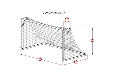 Dimensions: 7'H x 21'W x 3'D x 7.5'B - 3mm Thickness MEETS CPSC AND ASTM STANDARDS: The only 3.5" mesh soccer net on the market that conforms to public and private playground standards published by CPSC and ASTM HIGHEST QUALITY CONSTRUCTION: This braided, knotless rope construction withstands wear and tear far better than standard twisted and knotted soccer nets STRONG AND DURABLE MATERIAL: HTTP(high tenacity polypropylene) is some of the strongest netting available. UV PROTECTION: Advanced UV treatment protects net from sun's rays.