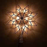 Pre-Lit Tree Topper: Features 10 warm incandescent lights that emit a warm and inviting glow. High-Quality Material: Made of beautiful Capiz, brass, metal and plastic to create a beautiful, distinct decoration for indoor use. Traditional Stylings: Features an elegant 8-point star design. Reliable and Easy Installation: Attaches easily to the top of your tree with the metal coil base. Holiday Focal Point: Measures approximately 9.25 inches tall to stand tall on your tree, tying your decor together. Reliable and Easy Installation: Attaches easily to the top of your tree with the metal coil base.