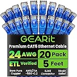 GearIT 20-Pack, Cat5e Ethernet Patch Cable 5 Feet - Snagless RJ45 Computer LAN Network Cord, Blue