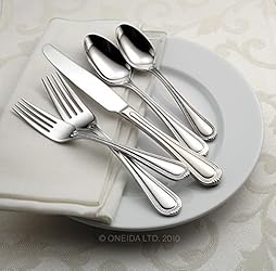 20-piece flatware set with service for 4. Set includes 4 each: place knife, place fork, place spoon, salad/dessert fork, and teaspoon 18/0 stainless steel. Durable and stylish Countess, a feminine classic that dresses up any table setting has a beaded rim crowned with a tiara like tip Dishwasher safe, never needs polishing Limited lifetime warranty. Each piece of fine quality Oneida stainless is warranted against defects in workmanship and materials for the lifetime of the original owner