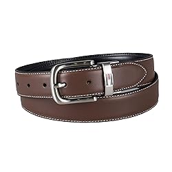 REVERSIBLE DESIGN: The 2-in-1 reversible design offers double the styling options while buying just one belt. Reverse the rotative buckle by simply pulling up the buckle at the hinge while rotating it and put it back in place to wear one way or another TRADITIONAL STYLE: This classic men's belt is the perfect addition to your accessory collection. The belt strap switches from brown to black to help provide endless style options while not taking up space in your closet. SIZE: For best fit, order a belt two inches larger than your pant size. For example, if your pant size is 36 inches, order belt size 38. Available in regular sizes 30”-44”. FEATURES: Belt strap width measures 1.25 inches to easily fit through your pant loops. For best care, spot clean only.
