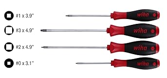 Wiha 35894 SoftFinish Cushion Grip Drivers, Square Tip, 4 Piece Set, No. 0, 1, 2 and 3