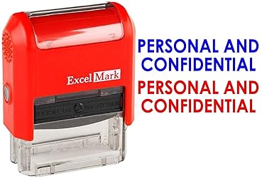 - Ensure efficient communication and provide clear instructions with the use of this PERSONAL AND CONFIDENTIAL self-inking rubber stamp. This stamp is ideal for rapid, repetitive stamping because the die automatically re-inks itself by rotating into a self-contained two-sided reversible ink pad. A unique feature of this stamp is its two-sided reversible ink pad that doubles the number of impressions and allows you to alternate the message ink color between red and blue.