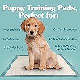 DOG TRAINING PADS: Looking to housebreak your furry friend? This essential tool is exactly what you need to get started; Great for puppies and dogs of all sizes, our extra-large Dog Training Pads are your solution to potty training your pup mess-free. HEAVY DUTY AND LEAK PROOF: Our Dog Training Pads are made for maximum absorbency, with 6 layers of leakproof quilting and InstaShield technology; Imagine how easy it will be to house-train a puppy with a pad that can hold up to 6 full cups of liquid. EASY HOUSEBREAKING: As well as saving your floors, these pads neutralize odor and feature a Wetness Indicator that turns teal when full to let you know it's time to change the pad. PUPPY TRAINING: Prevent messes with ease - these training pads contain a 3-in-1 Attractant working to encourage your dog to use the pad, and not your floor; With patience and consistency, your pup will know to go potty in the appropriate spot every time. SIMPLE SOLUTION: It’s just that…a simple solution to all of your pets’ messes – wherever they may be; We offer easy-to-use, no-hassle products that will effectively help you keep your home clean and sparkling; In short - its pet parenting made easier.