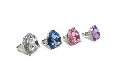 100% Plastic One dozen rings per order Measures 1 inch in size - child size Assorted shapes and colors Made of high-quality clear acrylic and skin-friendly metal Ages 6+