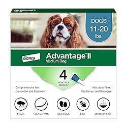 - Advantage II Medium Dog is the vet-recommended prevention and treatment of flea and lice infestations in dogs. Advantage II Medium Dog flea treatment and prevention kills adult fleas, flea larvae and flea eggs to deliver total flea protection to your dog or puppy. In fact, within 12 hours of application, Advantage II Medium Dog topical treatment gets straight to work killing fleas through contact, so they don’t have to bite your dog to die.This 30-day treatment effectively breaks the flea life cycle, controlling existing flea and lice infestations and preventing further infestations all month long. Fleas not only cause discomfort; they can also pose other health risks. Monthly use of Advantage II Medium Dog is important to protect your dog against fleas that may cause transmission of tapeworms in dogs, Flea Allergy Dermatitis and flea bite anemia.That’s why Advantage II topical, spot-on formula makes application simple - going on in seconds. It's easier than a flea collar and there are no hard-to-swallow pills. You’ll also love that Advantage II is fragrance-free and waterproof after 24 hours of application. Check the product label for information on application and potential side effects. Advantage II Medium Dog flea and lice protection is effective on both indoor and outdoor dogs. Your dog should be at least 7 weeks old and weigh 11 to 20 lbs. to use Advantage II Medium Dog.For the ultimate convenience in care, Advantage II Medium Dog is available over the counter – no prescription needed. And, you can stock up with a subscription for regular doorstep deliveries so you never miss a monthly treatment. Once Advantage II Medium Dog is applied, your dog is ready to get right back to exploring his favorite places – from the backyard to the dog park.Advantage II Medium Dog is a trademark of Elanco or its affiliates.