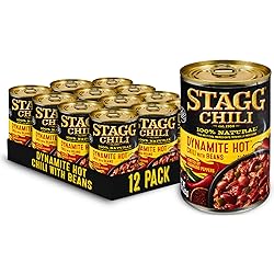 - STAGG® DYNAMITE HOT® Chili with Beans isn't for the faint of heart. It's slow-simmered to volcanic perfection, with tender meats, plump beans, and a jolt of heat from a blend of signature spices. STAGG® Chili is a tasty addition to your pantry or kitchen cabinet, with an easy-to-open design so you can serve it right away. STAGG® Chili is the perfect party food for the tailgate party or a warm bowl of comfort during the winter. Perfect as a topping for hot dogs, sliders, or just in a bowl with crackers. STAGG® Chili...THE CHILI CHILI LOVER'S LOVE™! STAGG Chili is a trademark of Hormel Foods, LLC.