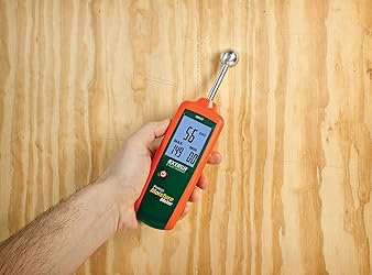 - The Extech MO257 Pinless Moisture Meter is your go-to tool for fast, accurate, and non-destructive moisture detection. Using advanced pinless technology, it measures moisture in wood, drywall, concrete, and other building materials up to 0.75 inches below the surface, giving you a clear view of hidden problems without causing damage. Designed with contractors, inspectors, and restoration specialists in mind, the MO257 features an easy-to-read digital LCD display for instant results, along with a relative mode for comparing readings across different surfaces. Whether you’re troubleshooting water damage, checking flooring before installation, or verifying structural integrity, this meter provides the accuracy and reliability you need. Compact, rugged, and portable, the MO257 slips easily into your toolkit or pocket. With professional-grade performance in a handheld design, it’s the perfect solution for anyone who demands fast and dependable moisture measurements on the job.