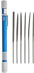 - Our 4" (100mm), 6 piece mini file set, all cut 2, store in the anodized handle. Features pocket clip and steel chuck. Handle is well-knurled for easy gripping.