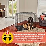 Designed for Giant Breeds: Measures approximately 54.25 x 36.75 x 45 inches; sized for extra-large dogs over 100 lbs such as Great Danes, Mastiffs, St. Bernards, and Rottweilers Heavy-Duty Drop-Pin Construction: Assembles with four drop-pins for maximum durability and stability; requires two people for safe setup Dual Door Access: Front and side doors allow flexible crate placement; each door features three heavy-duty slide-bolt latches for added security Built for Strength & Safety: Reinforced with a patented “L” bar on the top panel to prevent side panels from bowing inward after assembly Easy to Maintain: Includes a leak-proof removable plastic pan for simple cleanup; four rubber roller feet protect floors from scratches. Divider panel NOT included Family Owned & Operated: Proudly family owned for over 100 years with customer support based in Indiana; we stand behind the quality of our products to help you create a safe, comfortable home for your pet Assembly Instructions Included: All setup and safety instructions are provided; please read thoroughly before assembly and use to ensure proper and secure installation