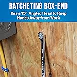 EASY OPERATION: Ratcheting box-end has a 15° angled head which makes work faster and easier PRECISION TORQUE: Ratcheting box-end also offers 12 points of contact to provide maximum torque HIGH DURABILITY: Made of chrome plated chrome vanadium steel for maximum strength and durability VERSATILE USE: Wrench-end has a 15° offset to allow easy access to connectors, nuts, and bolts CONVENIENT FUNCTIONS: Wrench is 6-5/8" long LIFETIME: Jonard Tools makes high quality tools that are Made for Life