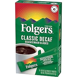 Folgers Classic Decaf Decaffeinated Instant Coffee Crystals, 6 Single Serve Packets (Pack of 12)