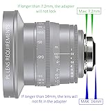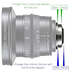 Strict PL Fitment Specs: Compatible only with PL lenses that meet both mechanical requirements: a mount lip ≤ 7.2 mm (to allow locking) and a rear base length < 14 mm (to avoid internal contact). Lenses exceeding either dimension will not fit or lock. Precision made professional lens adapter Infinity focus or beyond allowed Limited 24-Month Fotodiox warranty