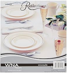 - You will receive (1) Set of Reflections Heavyweight "Looks Like Silver" Disposable Flatware (160 pcs) About Reflections Disposable Flatware: A Polished Presentation: Reflections cutlery looks amazingly like real silver, but are a heavy duty plastic cutlery. Reflections has the same shine and silver sparkle of stainless steel cutlery, giving you a unique, formal alternative to white, black or clear disposable cutlery. Reflections are also available in soup spoons, serving forks, serving spoons, cake/pie cutter, plastic tongs and petite hors d'oeuvre forks & spoons. About Simulinen Napkin: The secret to this product is in our revolutionary method of fusing cotton and virgin paper towels to produce an elegant and soft, yet extremely durable finished product. You will get a fresh, clean appearance every time out of the box. You never have to worry about stains, frays or burn marks -- unlike linen. Our Weave Emboss technology gives the napkins an extra thickness and absorbency, and at the same time, leave the product soft and silky.